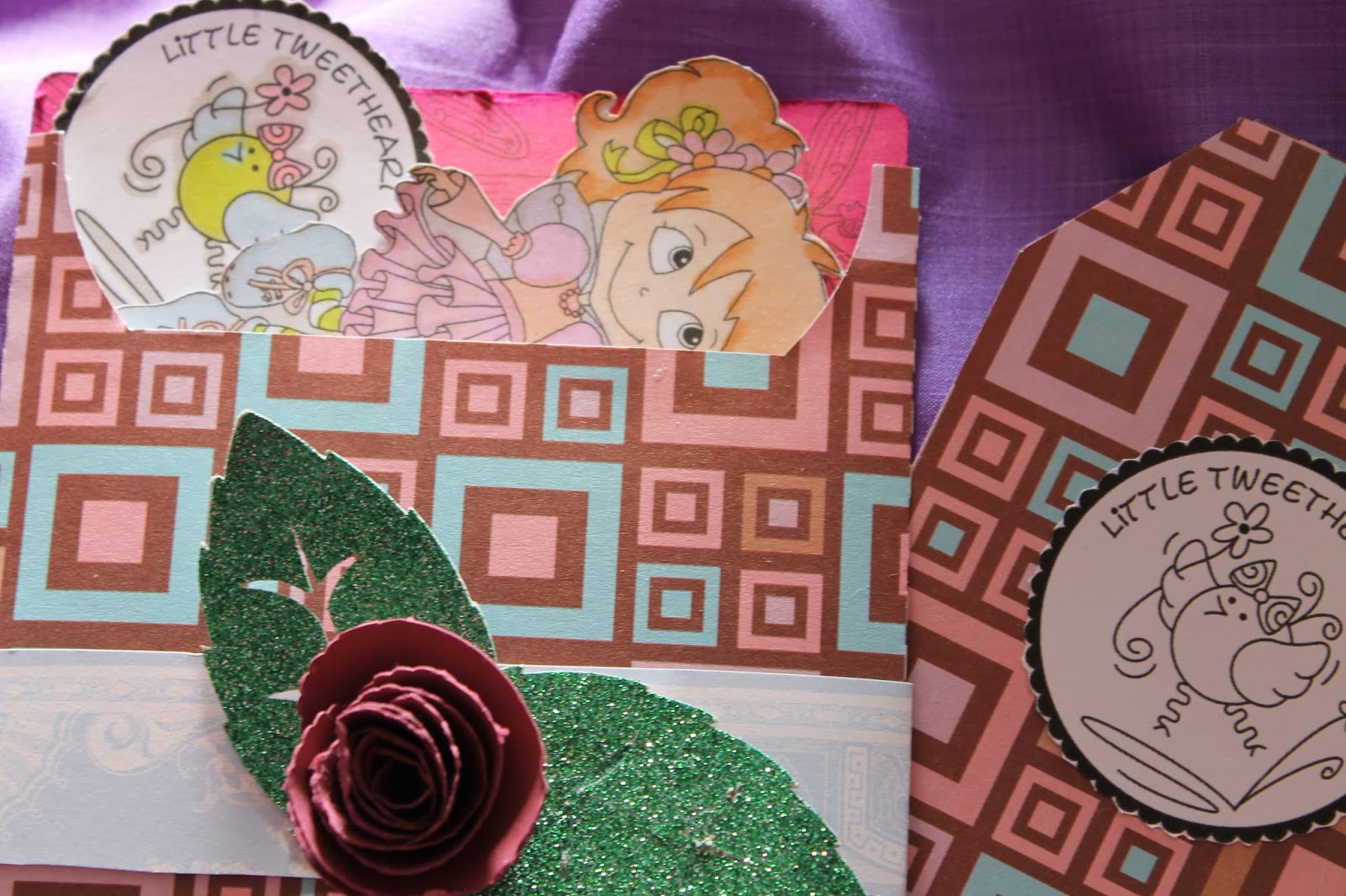 as well as the rolled rose. The 'Little Tweetheart' sentiment is from Cuddly Buddly.
